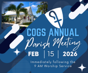 Good Shepherd’s annual meeting for all parishioners, members, and associate members held in Kirk Hall immediately following a combined 9 AM worship service.